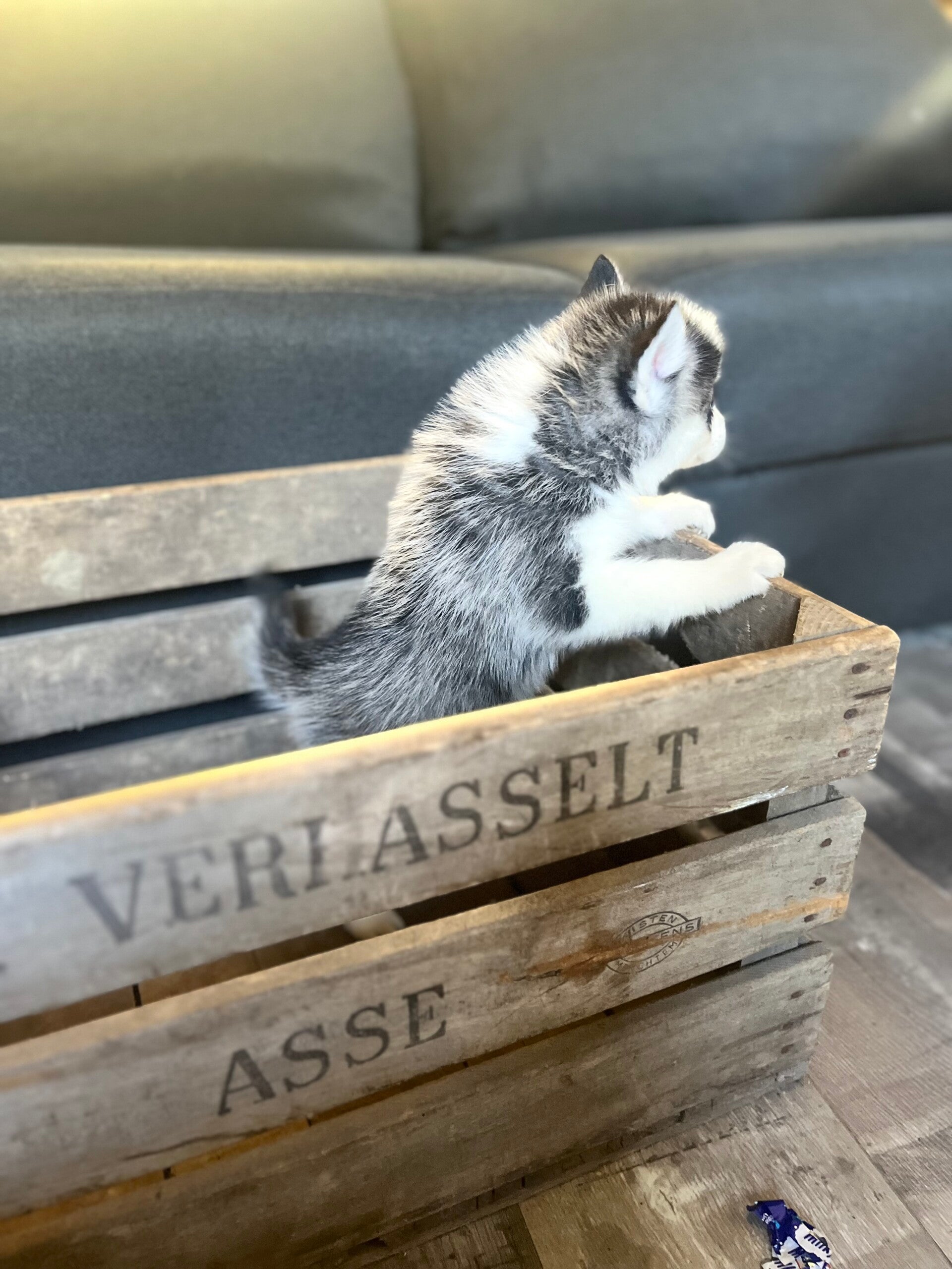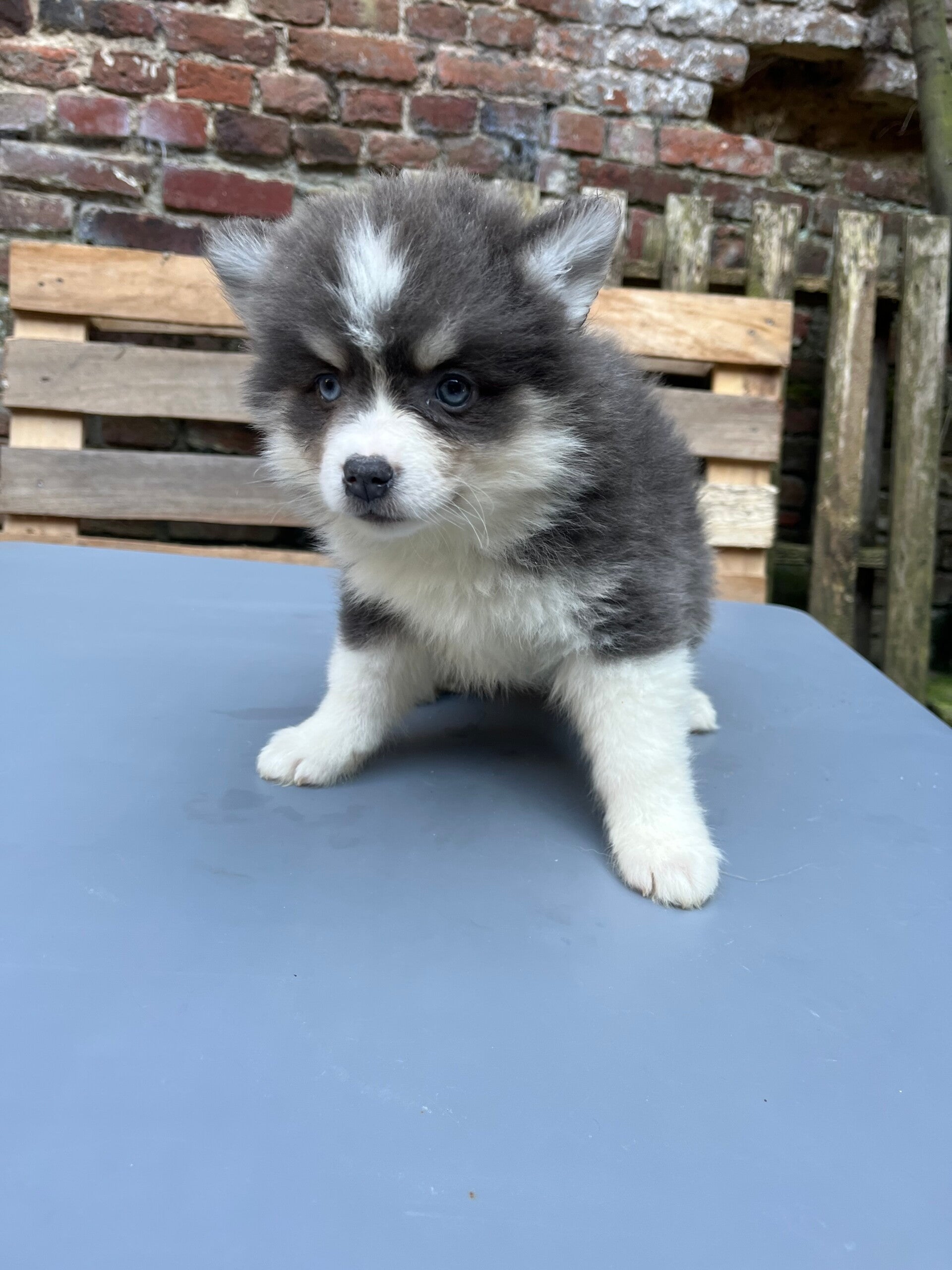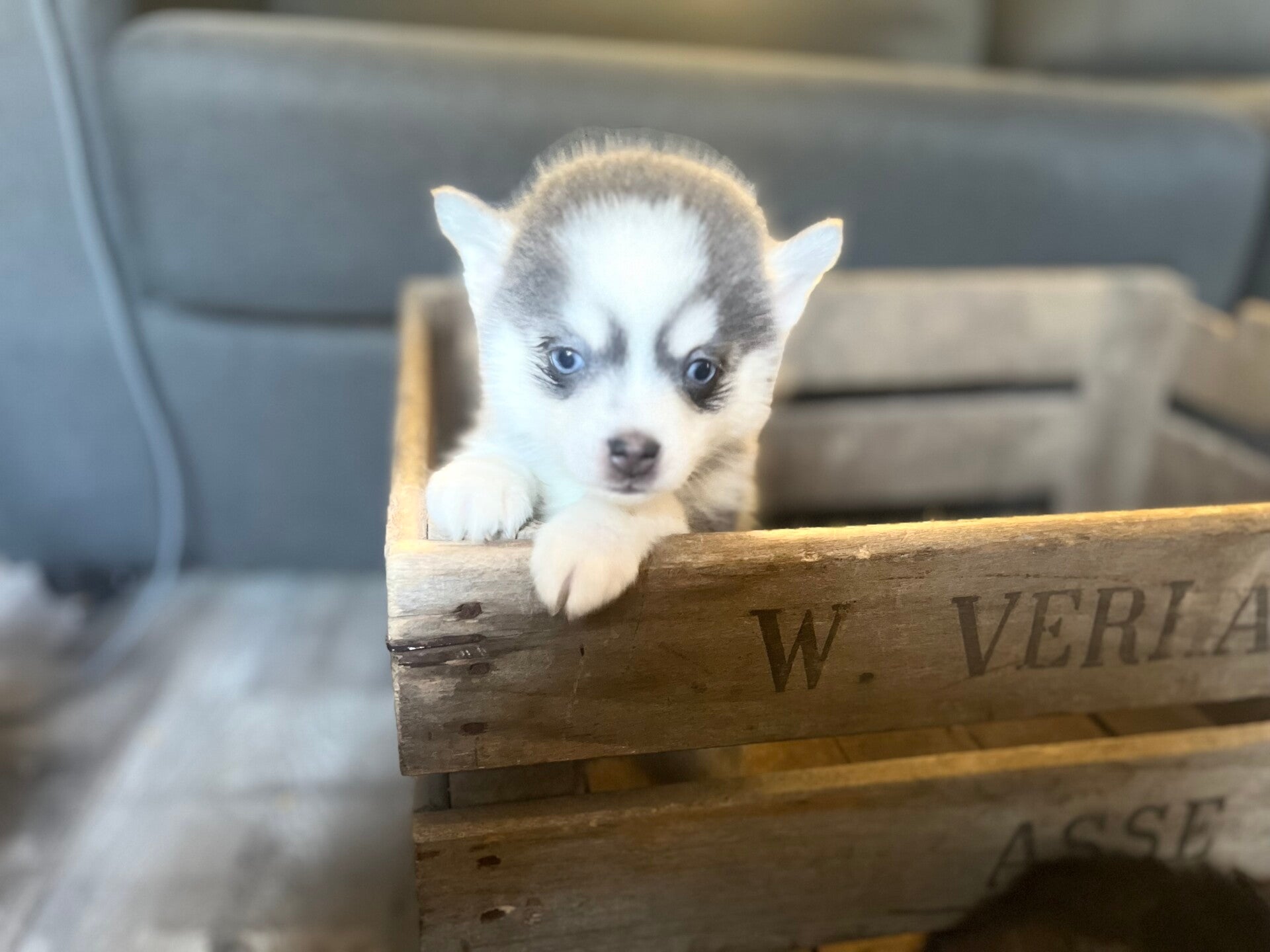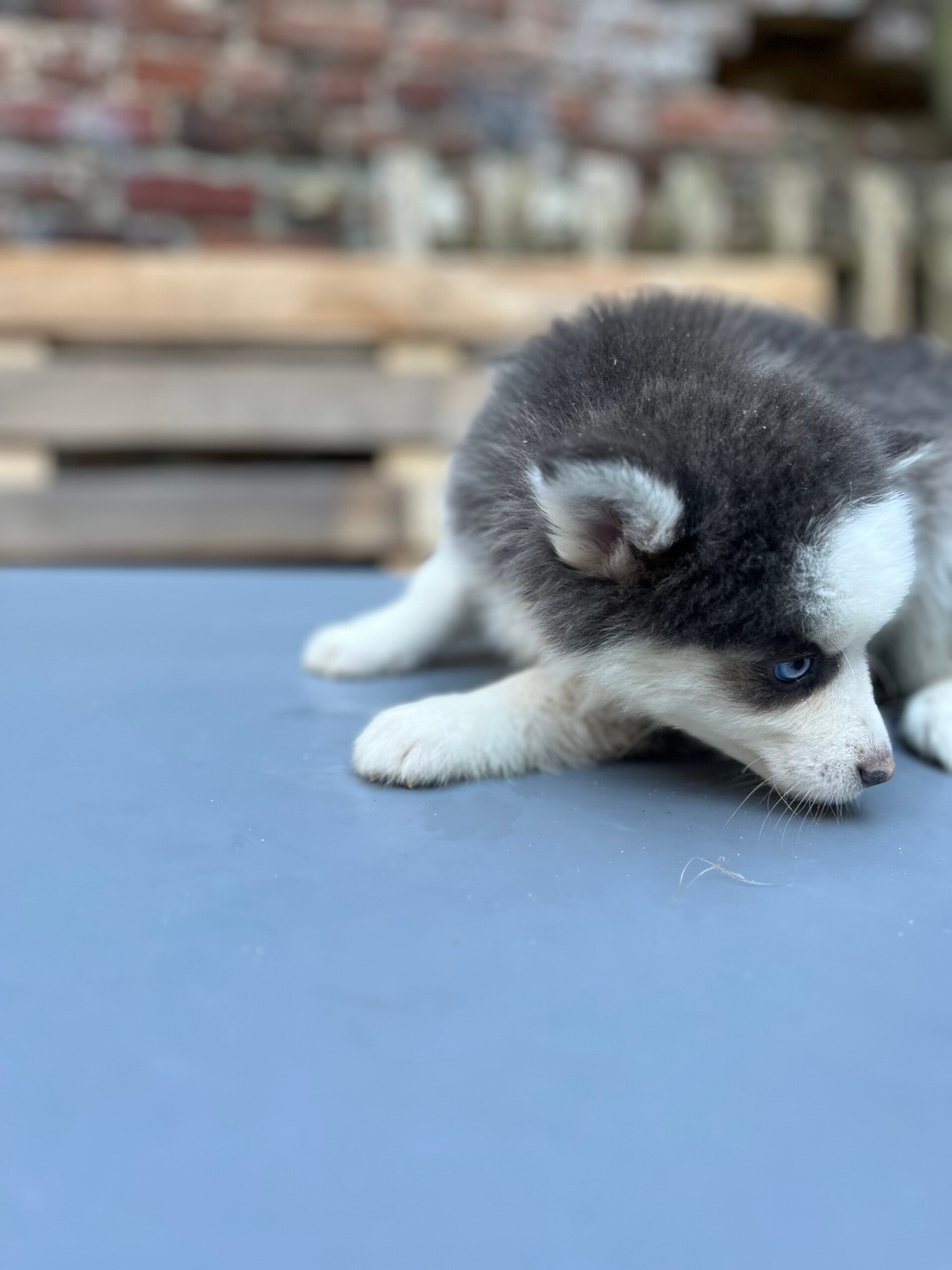 - Adonis : mâle noir et blanc avec de magnifiques nuances, masque fleur de lys et yeux bleus. Un vrai petit husky. Il sera de gabarit moyen. C est un chiot très calme.