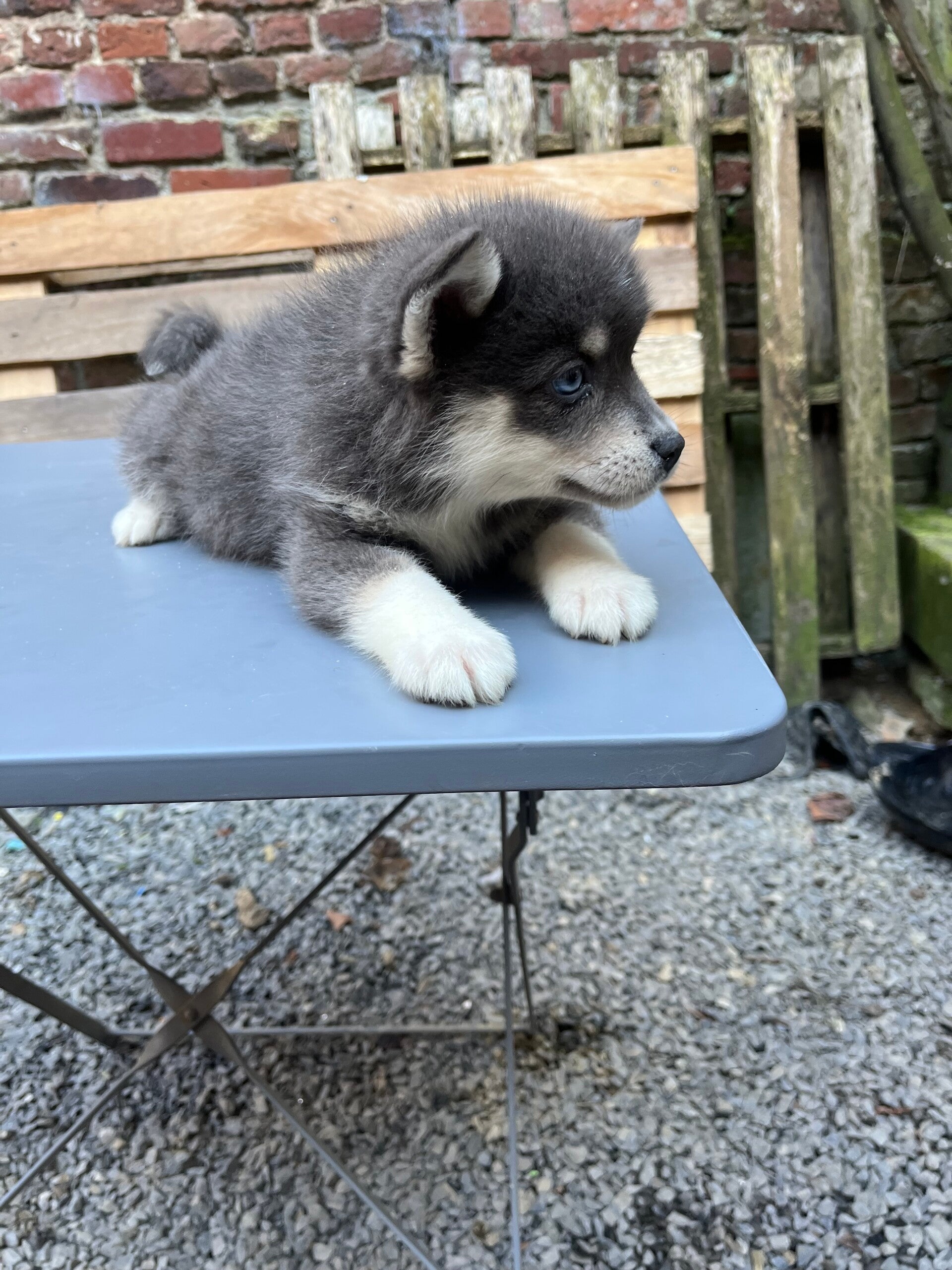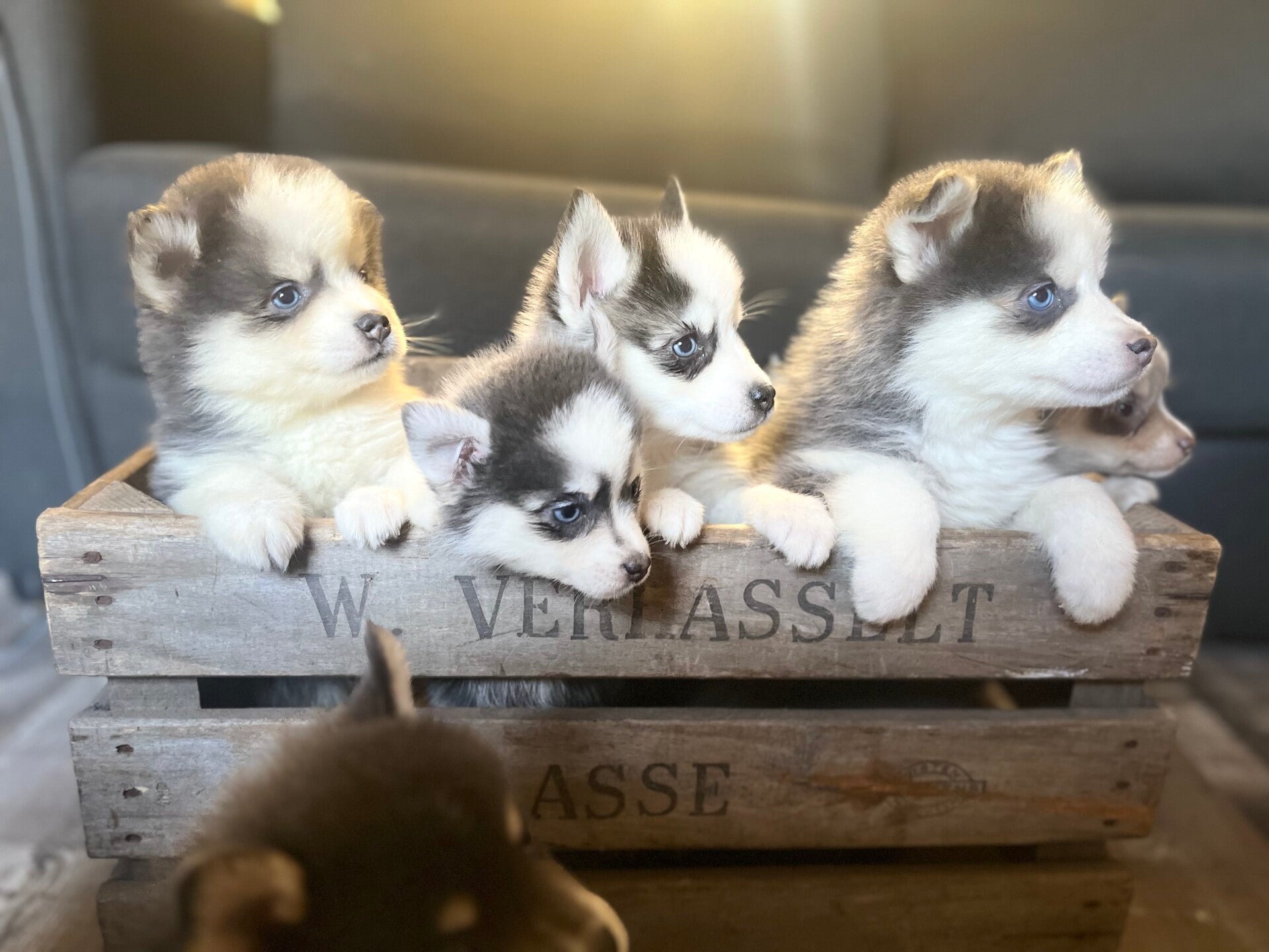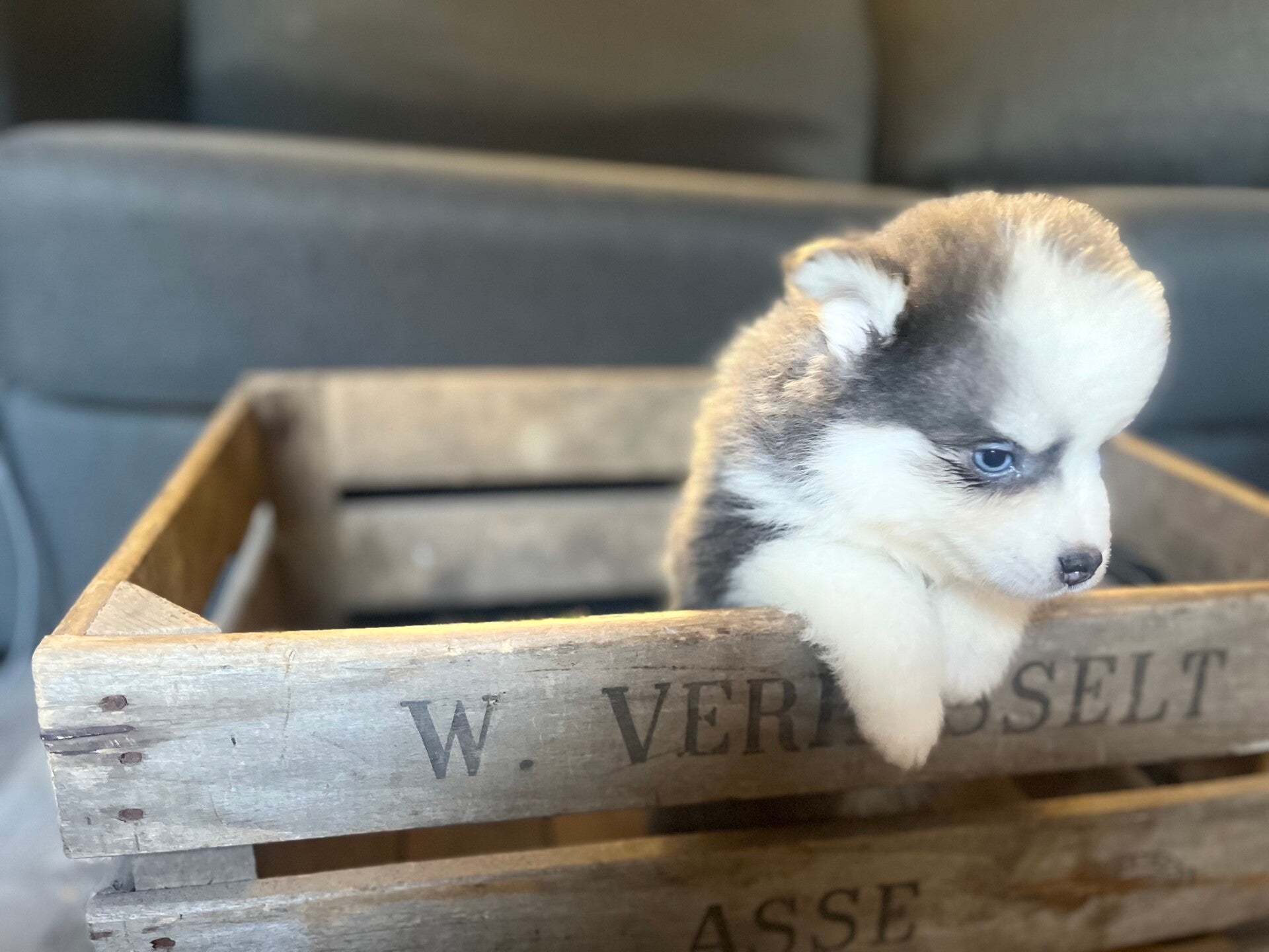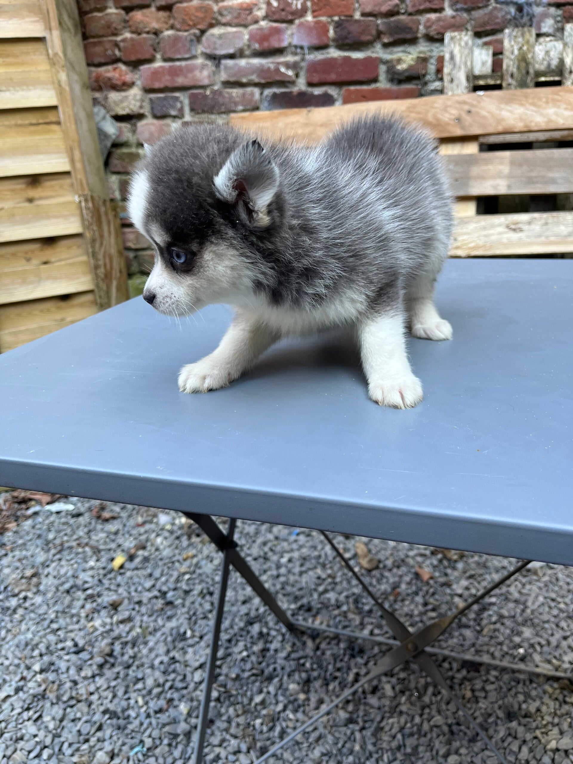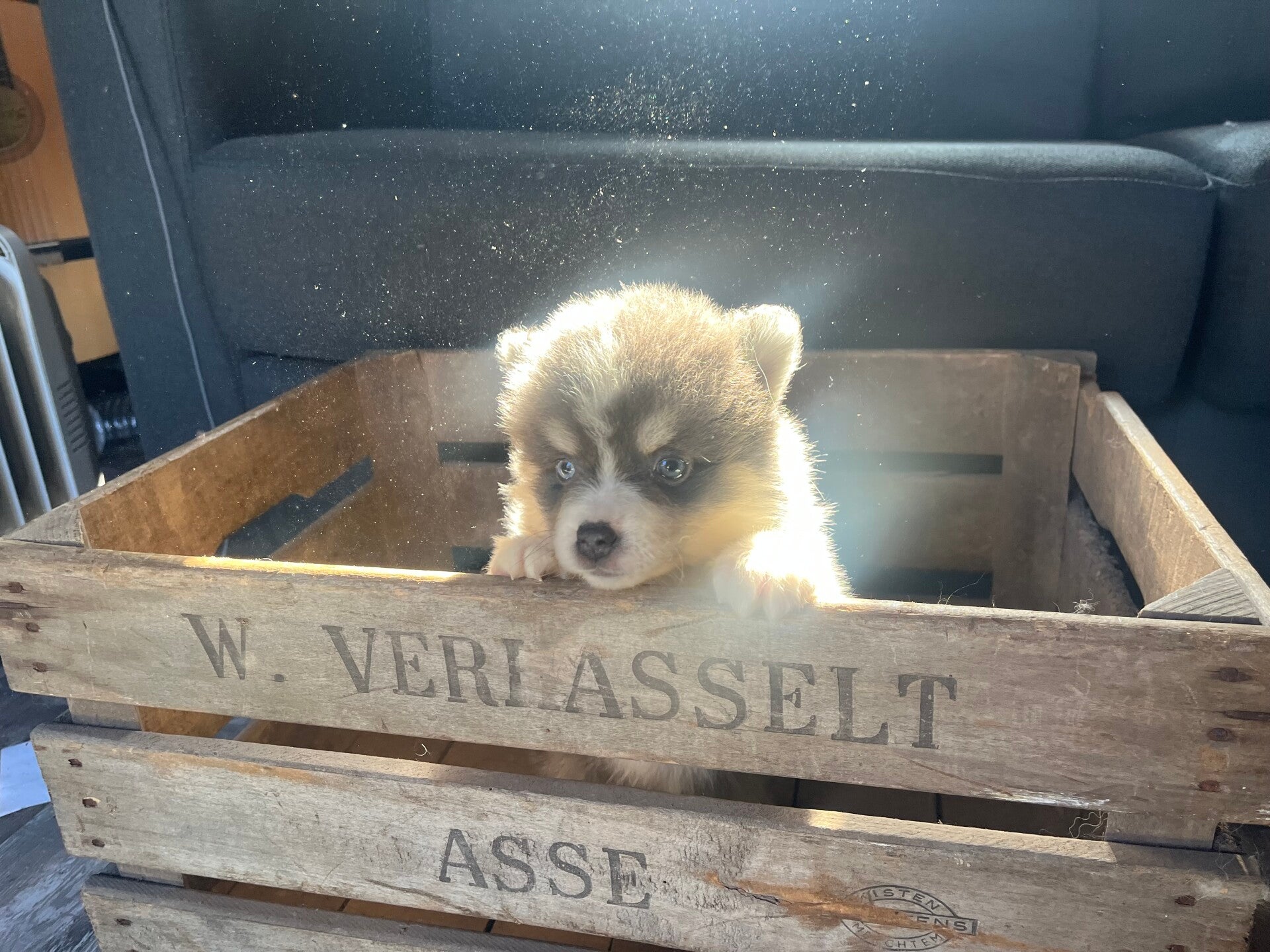 - Adonis : mâle noir et blanc avec de magnifiques nuances, masque fleur de lys et yeux bleus. Un vrai petit husky. Il sera de gabarit moyen. C est un chiot très calme.