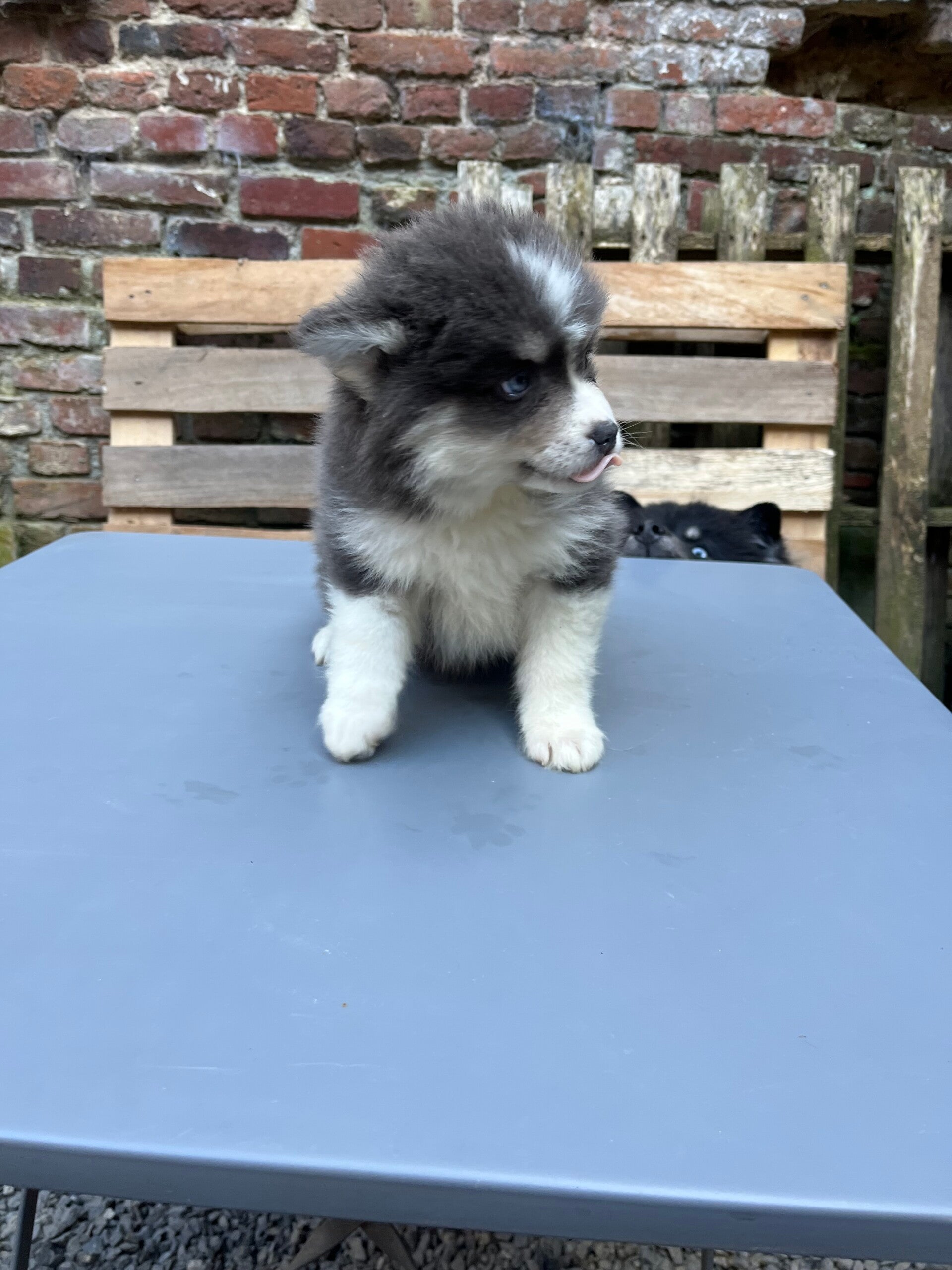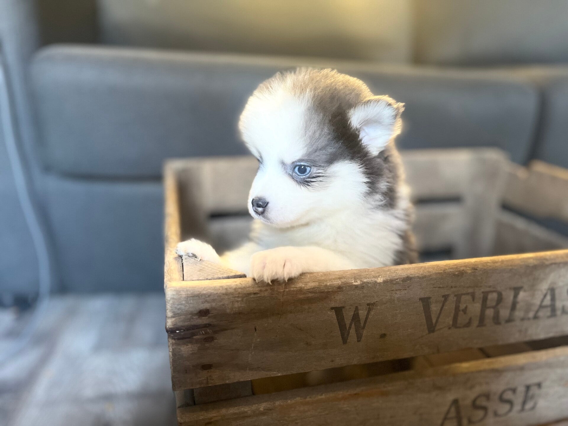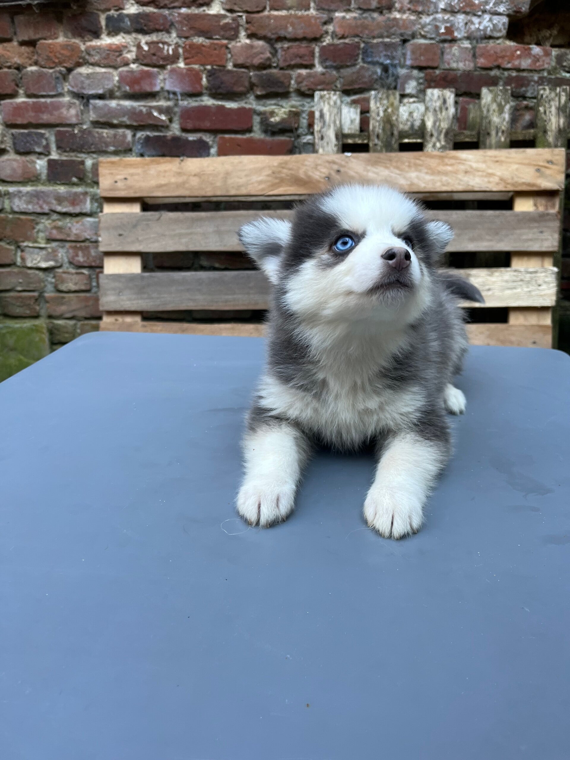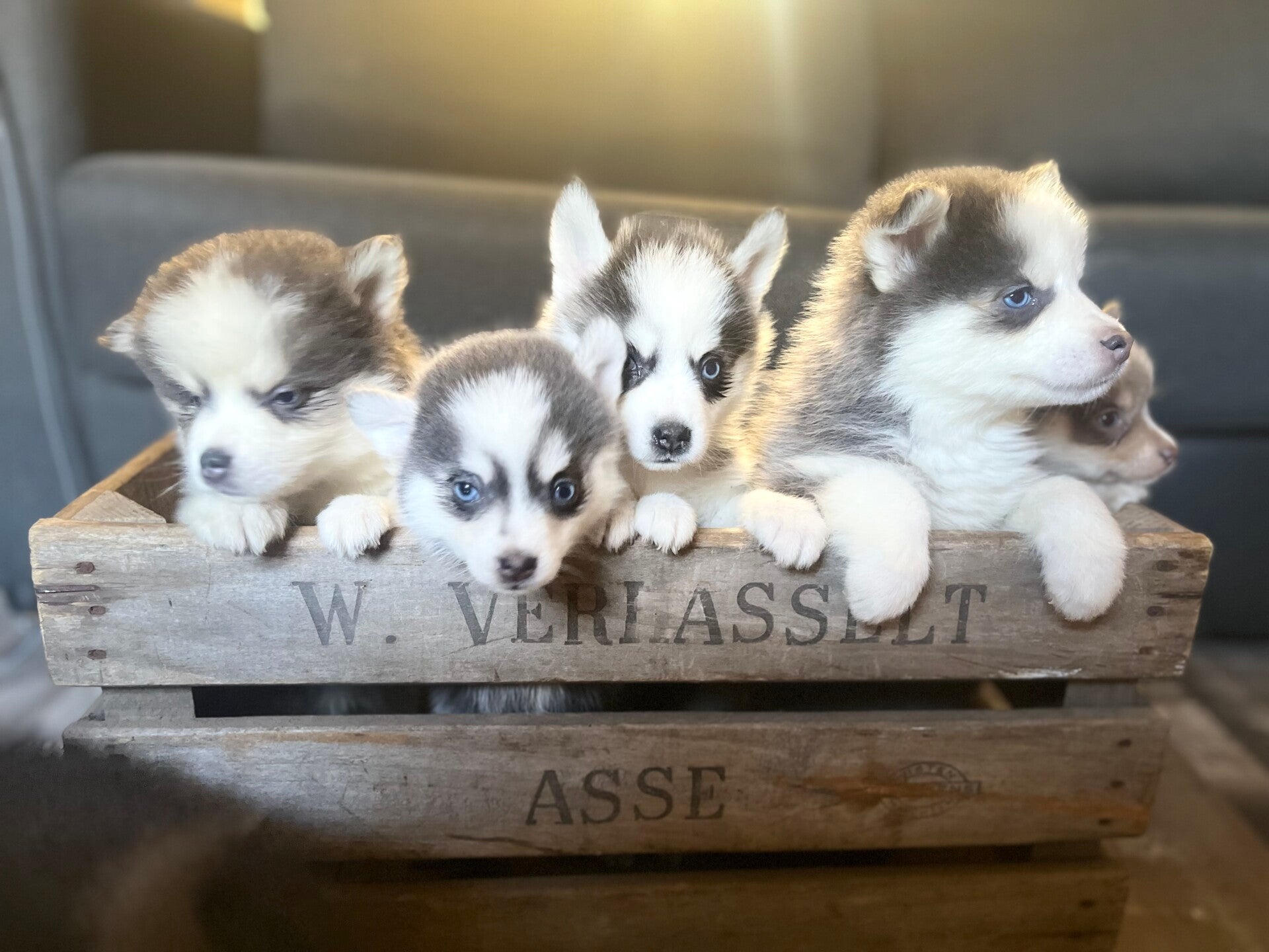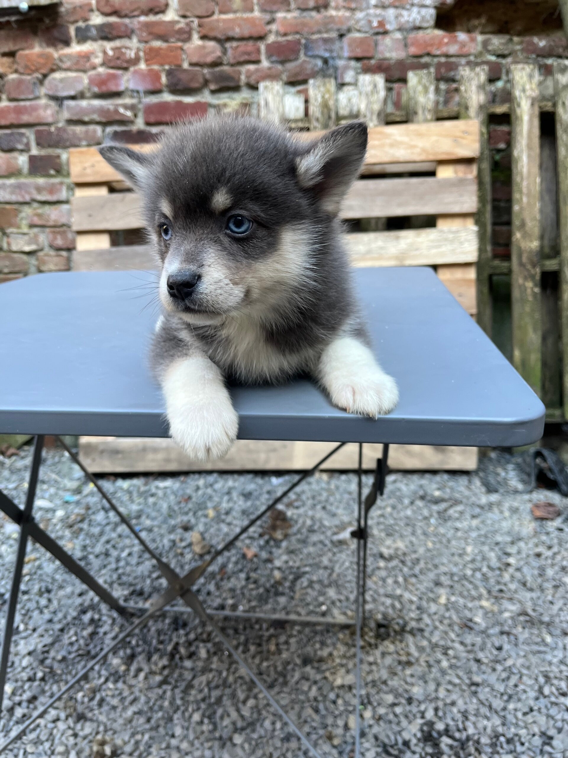 - Adonis : mâle noir et blanc avec de magnifiques nuances, masque fleur de lys et yeux bleus. Un vrai petit husky. Il sera de gabarit moyen. C est un chiot très calme.