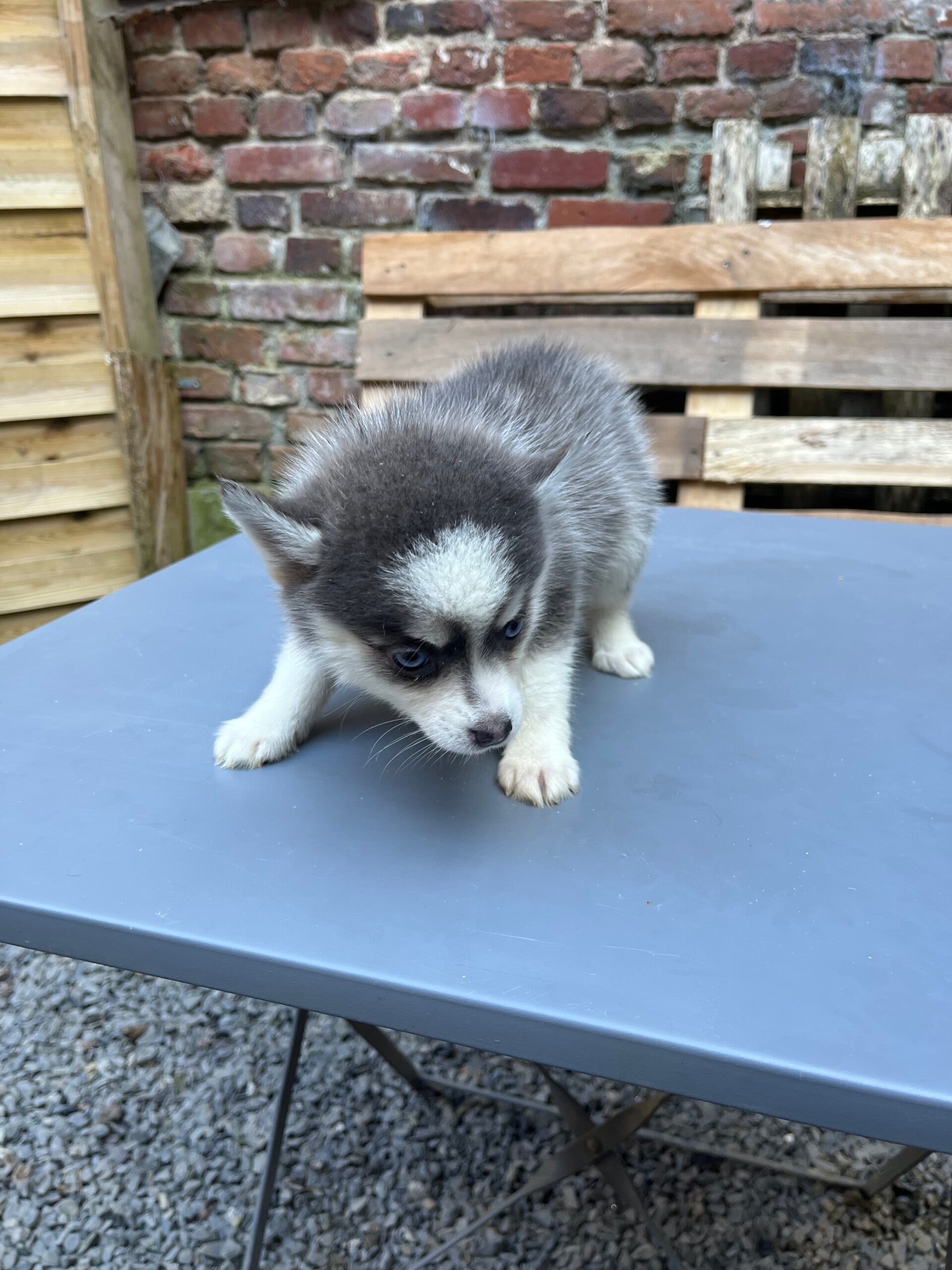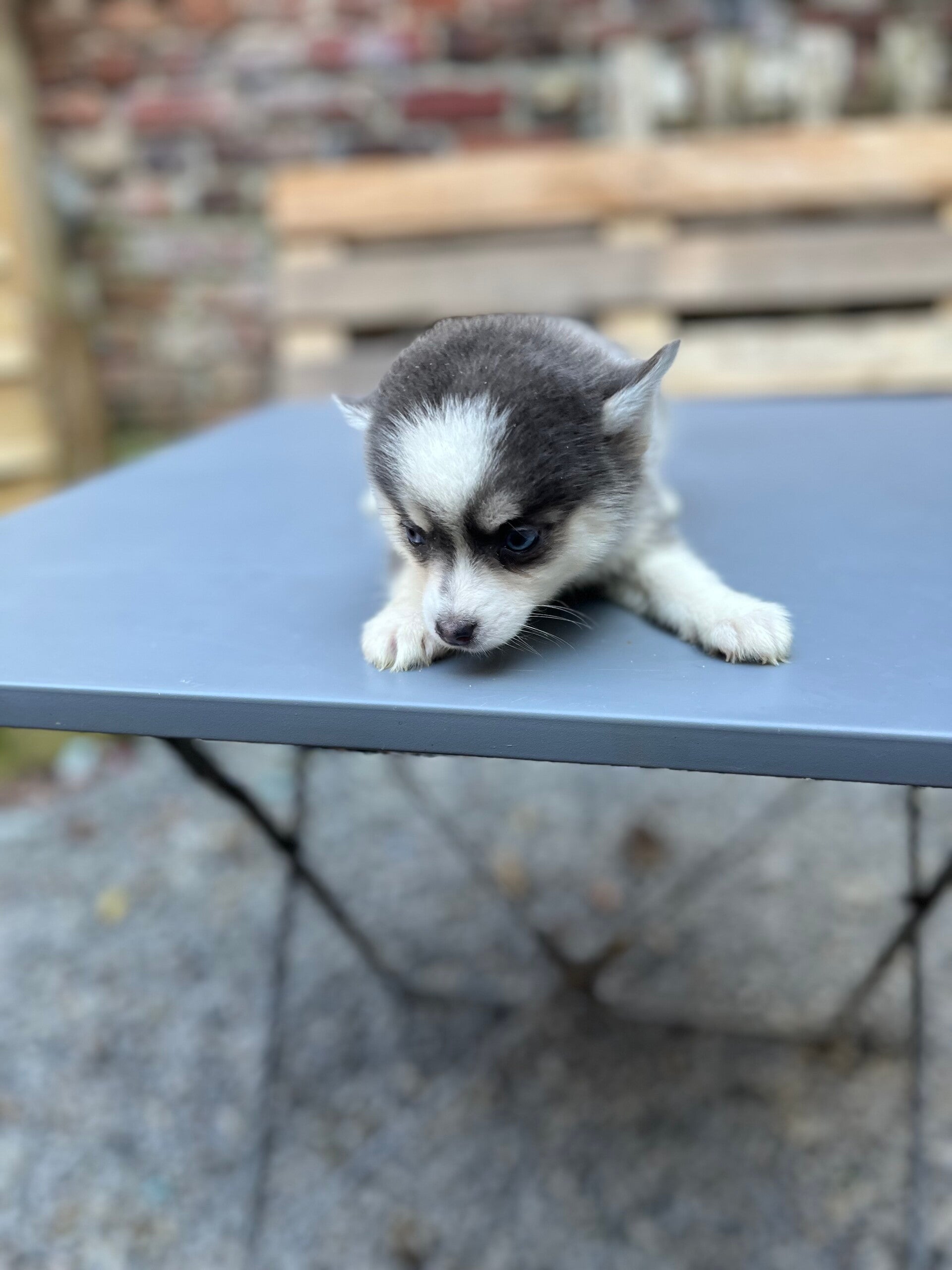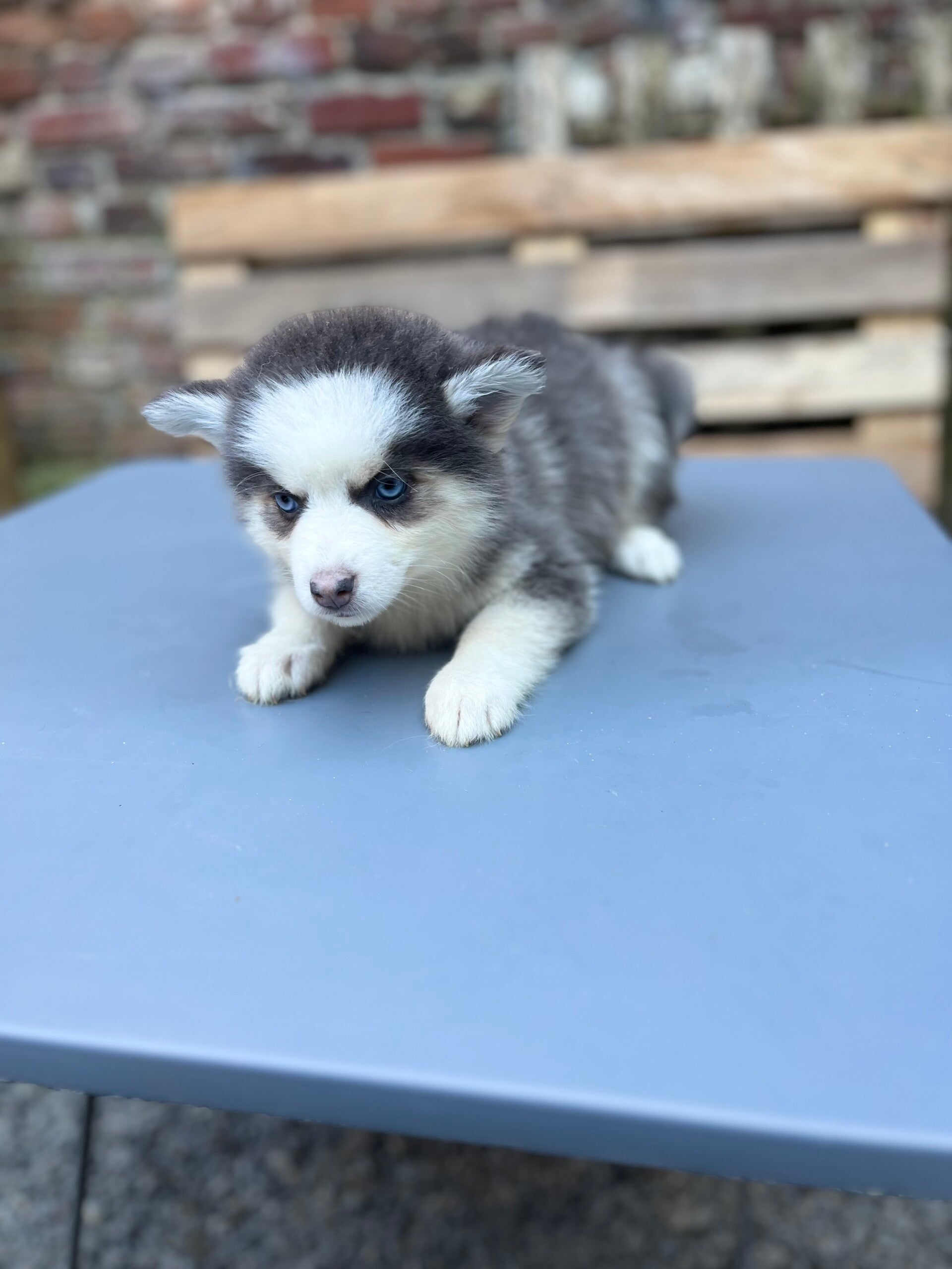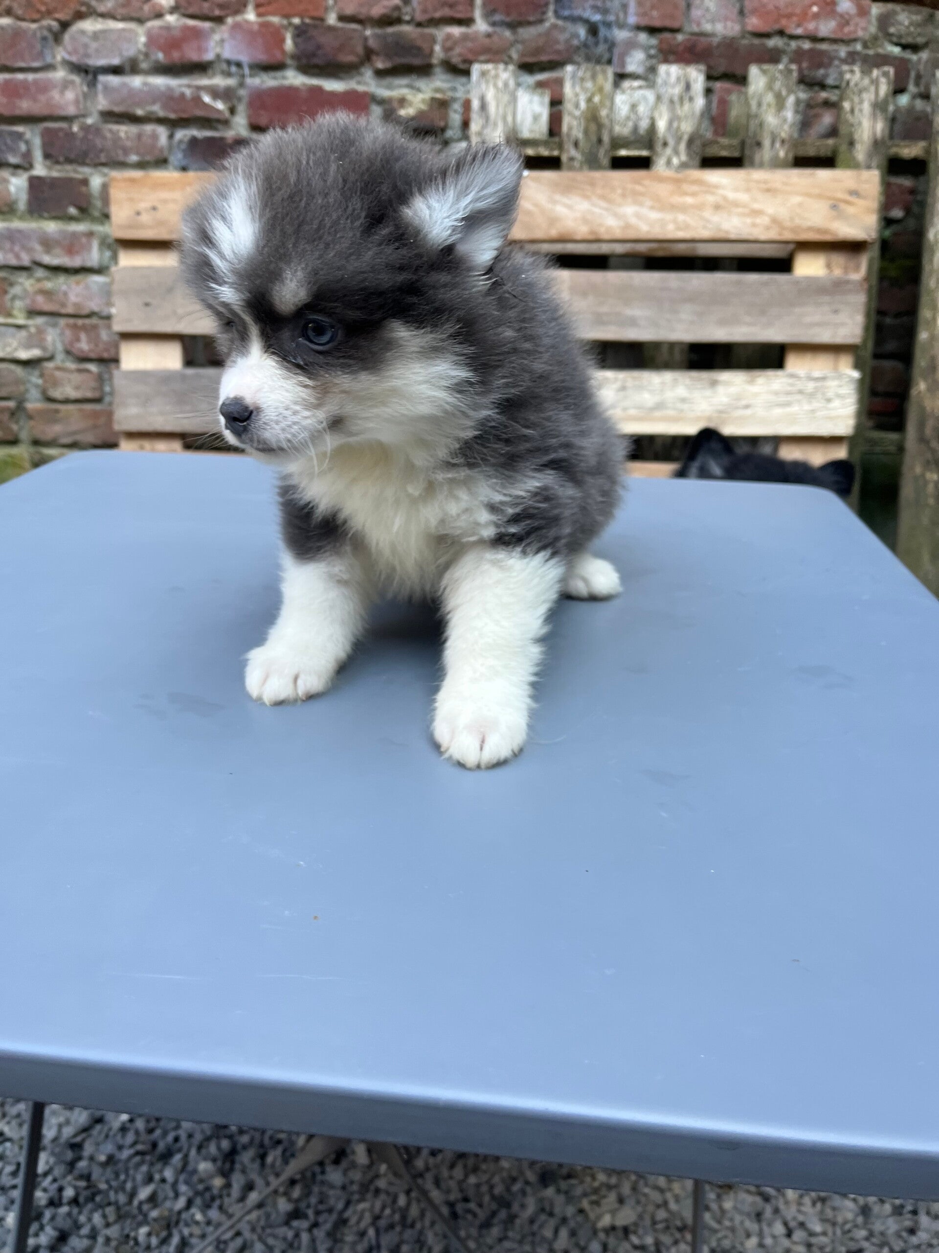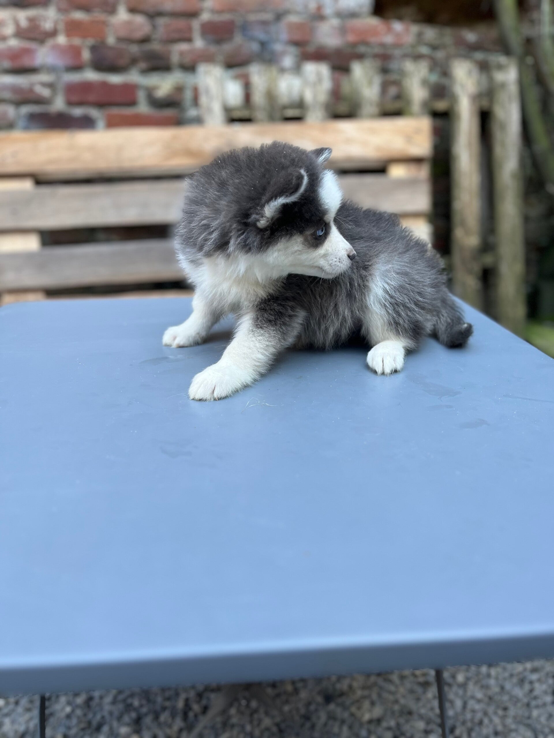 - Adonis : mâle noir et blanc avec de magnifiques nuances, masque fleur de lys et yeux bleus. Un vrai petit husky. Il sera de gabarit moyen. C est un chiot très calme.