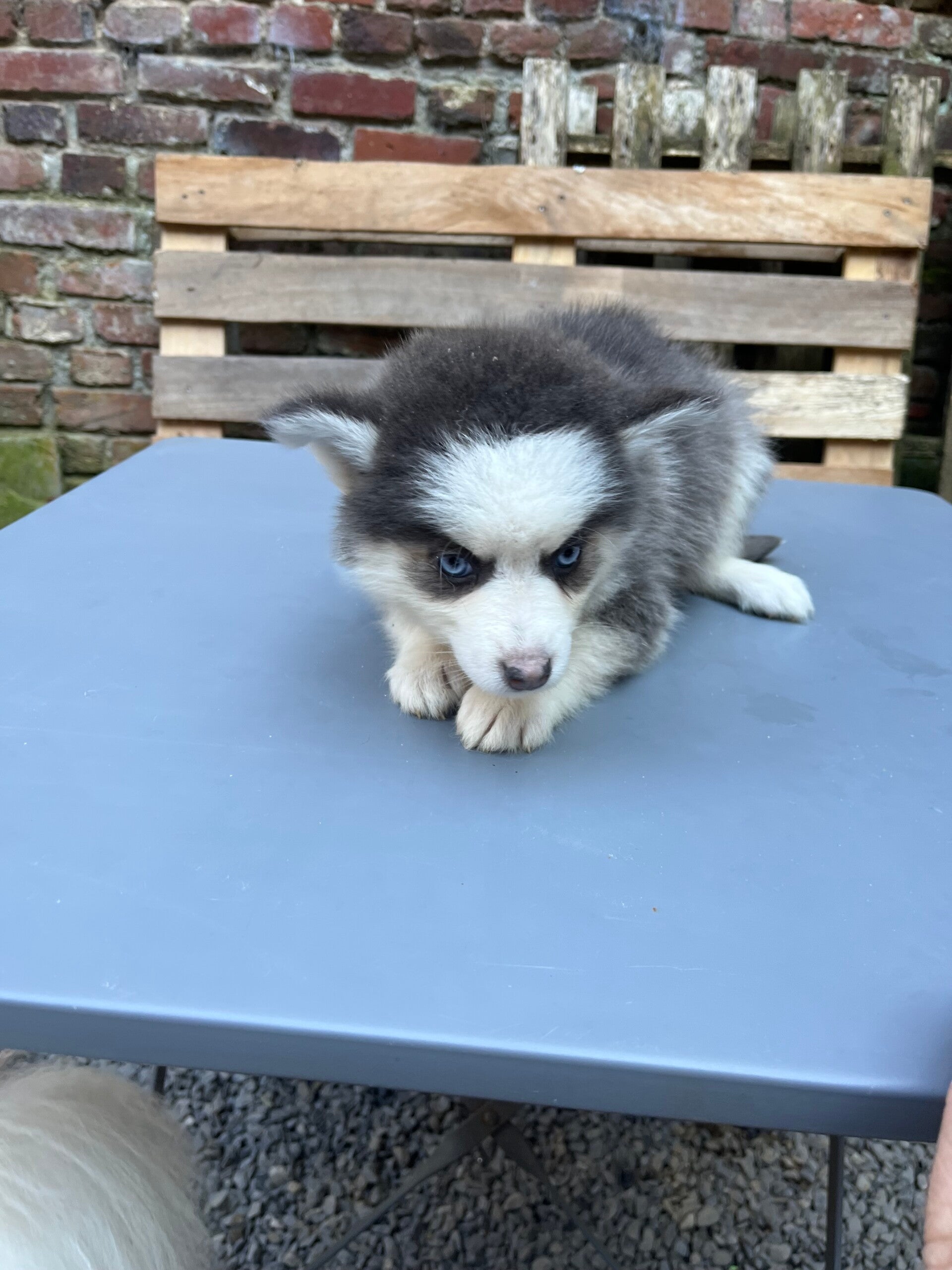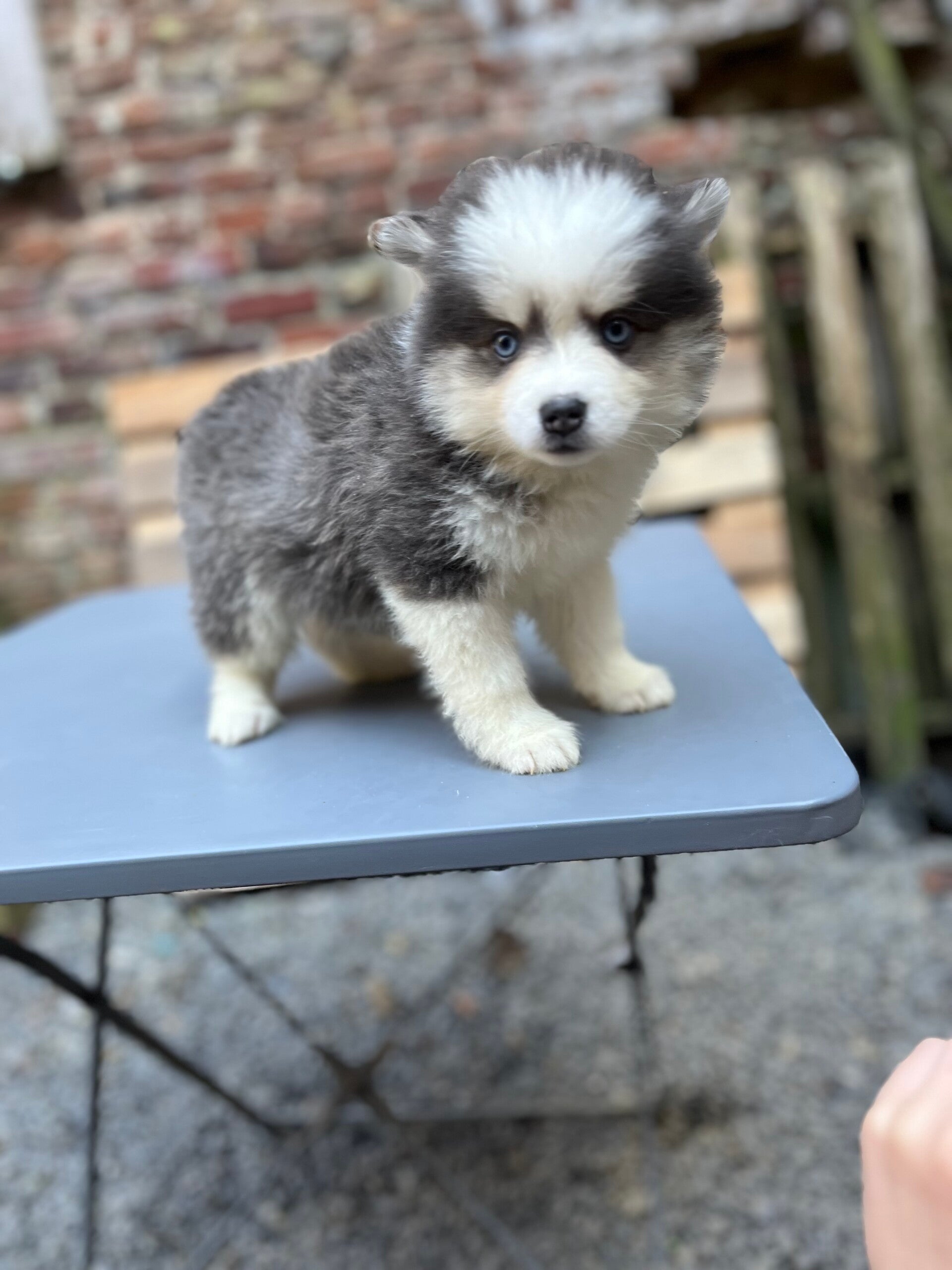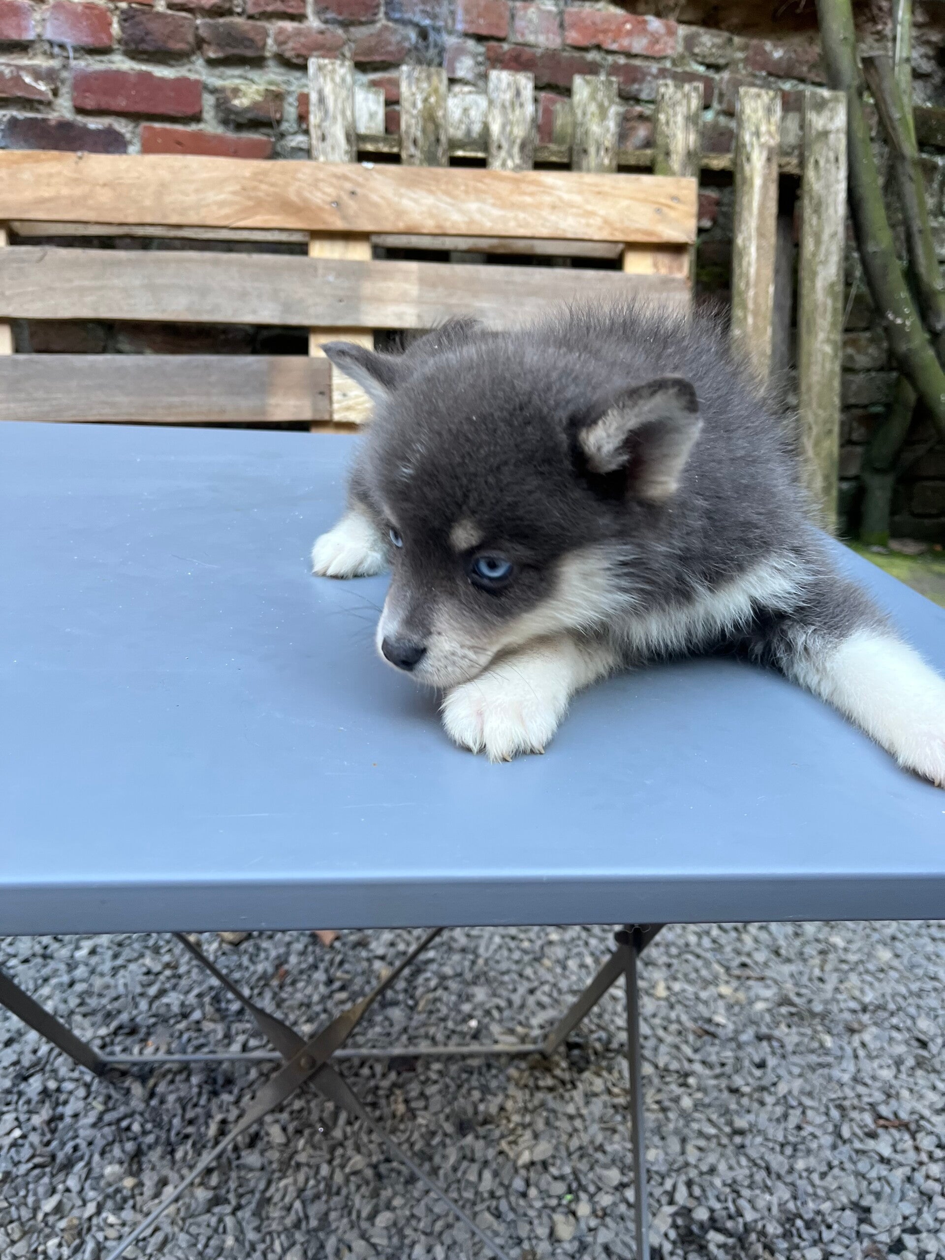 - Antigone : femelle miniature bleue et blanche à la fleur de lys parfaite. Antigone gardera ses beaux yeux bleus . C est une petite chipie joueuse et très câline.